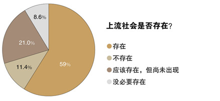 在《BEST LIFE·香格里拉》杂志六月号关于“实业家理想生活”的调查中,有多达59%的人认为已经存在一个上流社会;认为应该存在但尚未出现的占21%;8.6%的人认为没必要存在。“有没有上流社会”体现着他们对已然存在的阶层分化是犹疑还是踏实,也强烈地暗示着他们对未来社会发展和长远幸福的信心程度。