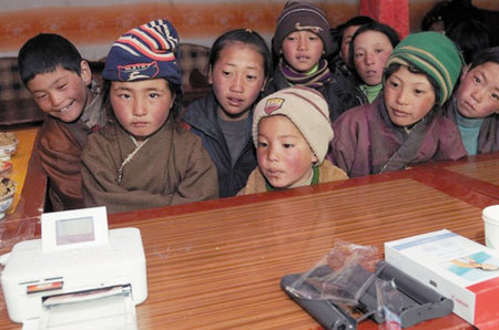 对这个能吐出印有自己样子小纸片的小盒子,孩子们感到十分新奇
