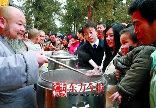 “您今天喝粥了吗?”记者追问释永信,他笑而不答。不过,谈起施粥的意义,释永信倒十分慷慨,腊八喝粥,是中华民族的传统,少林寺自去年恢复施粥传统以来,国内越来越多的寺院加入到施粥的行列,这也是传统文化的复兴。
