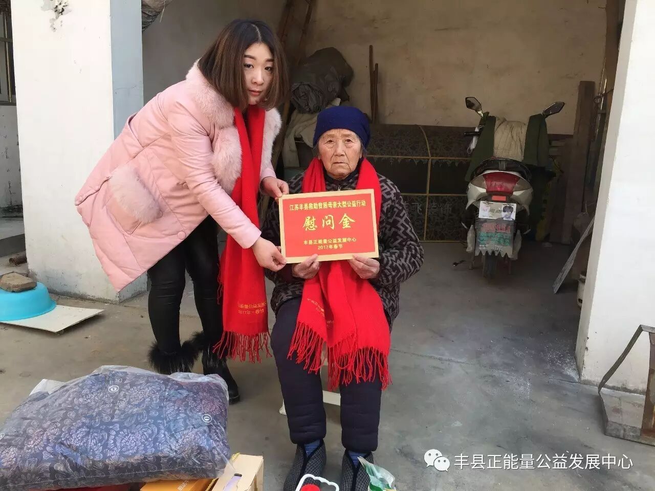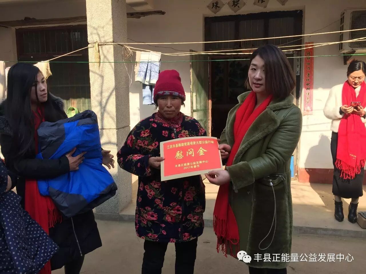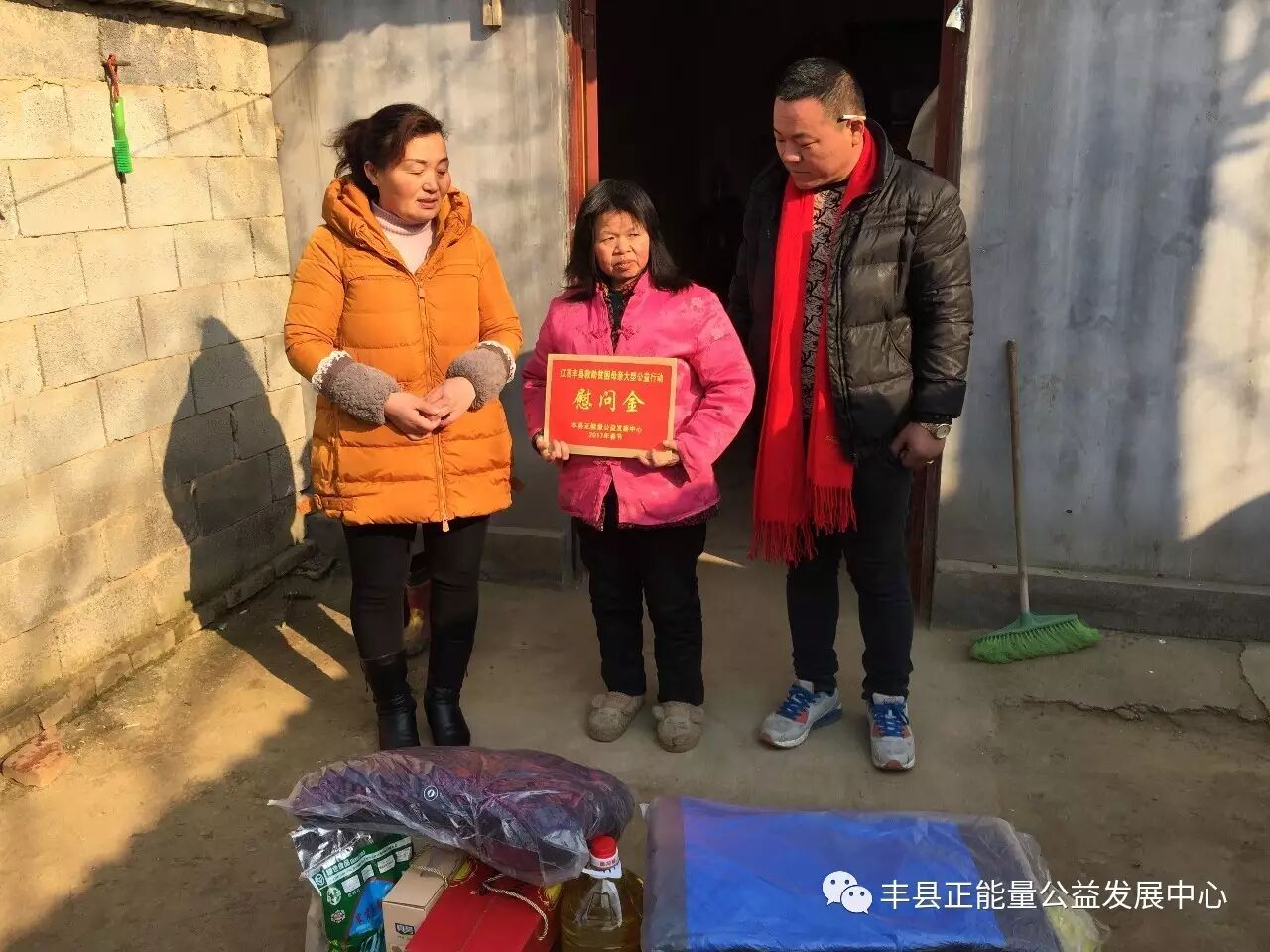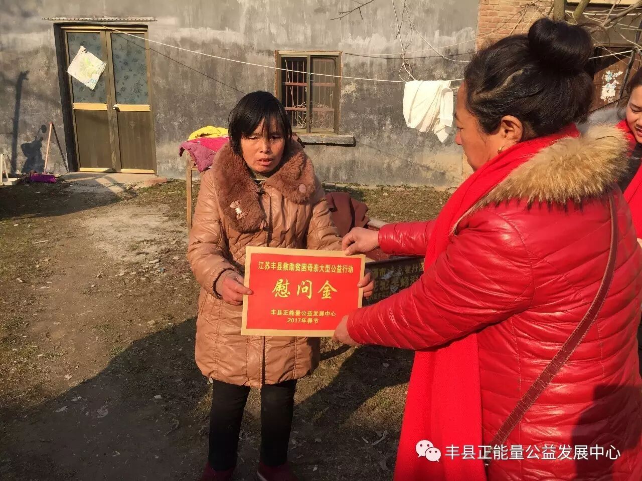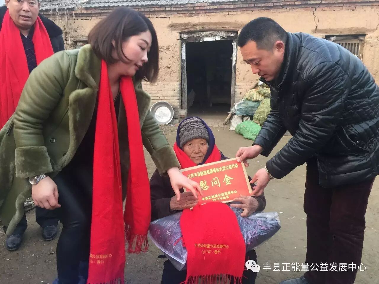 你看到了吗?鲜艳的党旗和党徽映红了母亲们的脸庞,也映红了我们广大志愿者的心。你听到了吗?老百姓嘴里那句“还是共产党好!”的话,她们说的情真意切,我们听得泪水涟涟。你还在观望吗?与其你在那里说我们的力量太小的时候,你不如加入这样的队伍,用你的力量为更多需要帮助的人奉献一份爱心。你还在诟病我们的行动吗?你不如放下所谓的恩怨,走进这阳光明媚的世界,走出自我的黑暗空间,鲜艳的旗帜一定也会让你知道这个世界上真的还有公益,这就是我们和谐社会的重要组成部分,你也会成为其中一员,因为你也是一个大写“人”。当你参与一刻不停奔行600公里的公益行动时,你一定会感受到人间真的有真情存在。不少企业在发展同时,不忘社会责任,积极投身家乡公益慈善事业,很多爱心人士也一道释放正能量,为全丰县贫困母亲的幸福贡献出了力量。捐款不及寡,善举不分先后,大家都积极行动起来,伸出热情的双手把爱心捧出,集聚爱的力量,让星星之火汇聚成传递爱心的火炬,为丰县的困难母亲送去爱心,让这个冬季因为丰县正能量公益而温暖,让更多的困难母亲因为公益的力量,和我们一样过一个幸福快乐的新春佳节!