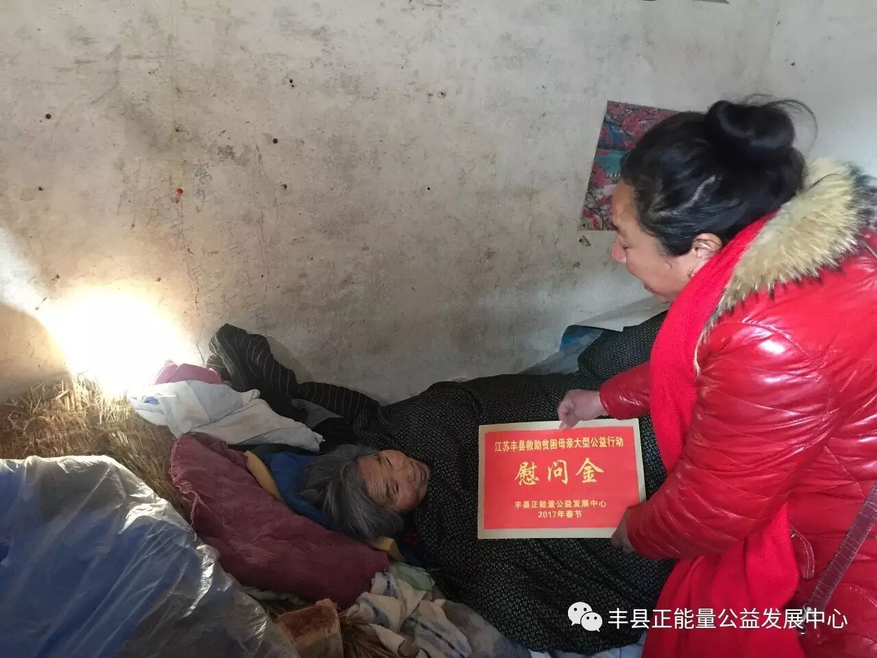 【微评论】这就是我们丰县贫困和善良的母亲们,她们年轻时生养儿女,传宗接代,为家庭操碎心。如今,由于年迈或者大病和家人久病导致极其贫穷,已经到了无力生活或者给她们钱都无处花的地步。我们仅仅带去了1000元的慰问金和价值几千元的物资,就让这些母亲们感动的热泪盈眶,甚至跪地磕头,就让他们口口声声感谢我们,感谢我们的党和政府。我们抹去眼泪,我们在思考,我们要把这样的看望和慰问进行常态化,我们真的要把党的关心和温暖送到最偏远的乡下,走到那些最需要的困难人群身边,让他们看到鲜艳的党旗,让他们感受到来自我们党和社会的温暖。我们区区的付出,得到是这些贫困母亲和人民群众的交口称赞。在看望过程中我们除了看到她们一张张饱经沧桑仍朴实憨厚的脸,就是听到围观群众说的最多的“还是共产党好!”。
