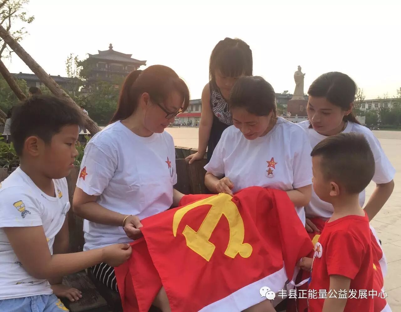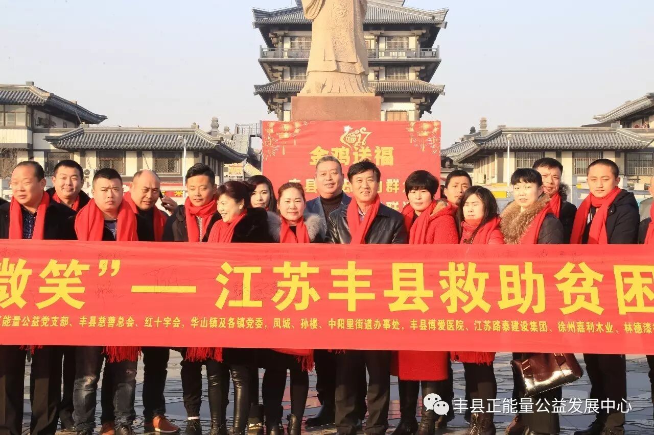 2017年春节刚过, 2月10日上午丰县正能量公益发展中心党支部副书记、工会主席李建国全家在妇联副主席史文娟的陪同下来到开发区黄堤口村苗秀兰家看望慰问她的两个均在上小学的孙女王聪蓉、王硕,为她们送上新衣服、生活和学习用品,李建国12岁上六年级的儿子李庆卓还把春节收到的600元压岁钱送给两位小妹妹,孩子们相约等到假期接两位妹妹到华山家中做客,两家还结成了帮扶对子。自此由丰县正能量公益发展中心党支部、妇联发起的救助全县“困境儿童”大型公益行动正式进入实施阶段,妇联的姐妹们又都奔波在救助“困境儿童”的路上。