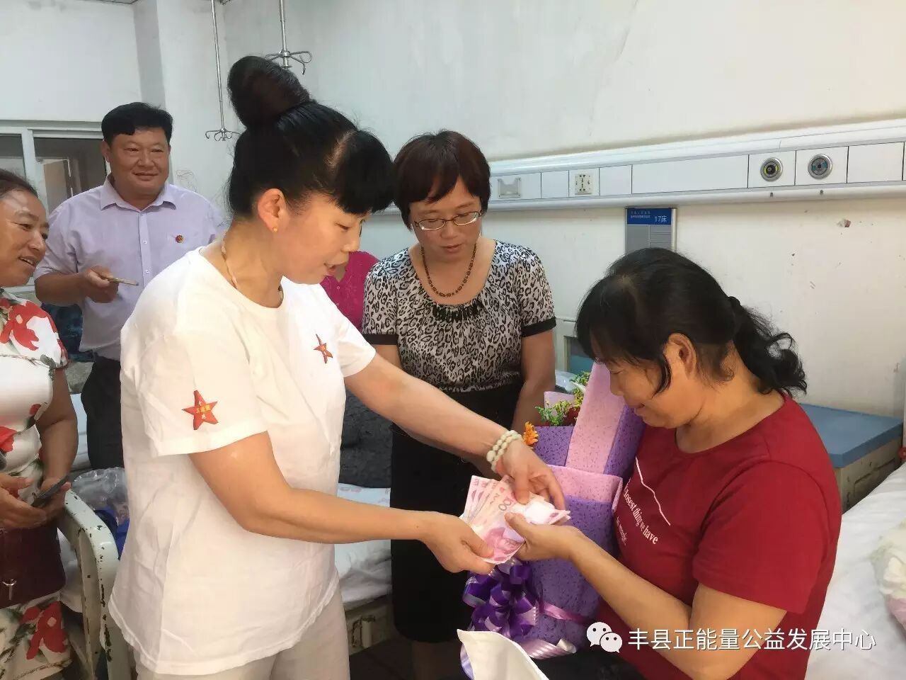 丰县正能量公益发展妇联在开展“精准扶贫”的同时,也没有忘记社会救助和社会公益事业。2016年8月份就联合县妇联对特大病患者祝素英进行了救助,首笔为其提供了5000元的治疗费用和生活用品,使其渡过了最艰难的时期 ,之后又先后提供万元的治疗费用.。9月5日,首个“中华慈善日”当天开展迎接启动仪式,妇联志愿者积极参与并前往华山镇小时楼敬老院进行慰问看望,为这里的老人带去价值5000多元的中秋礼品,并进行了亲老互动。10月1日国庆节,妇联联合县妇联、华山镇党委开展了向日葵“罐”爱公益行动,认领了20个储钱罐,为省少年儿童基金募集了7300元爱心款。中秋期间副主席史文娟自掏腰包1万多元看望走访了困难群众、困难母亲及困难军属。去年10月27日,正能量公益妇联干部志愿者到县医院看望因贫血造成胃大出血的“植物人”金顺利,为其送上4000元的治疗费,帮助他渡过人生难关。