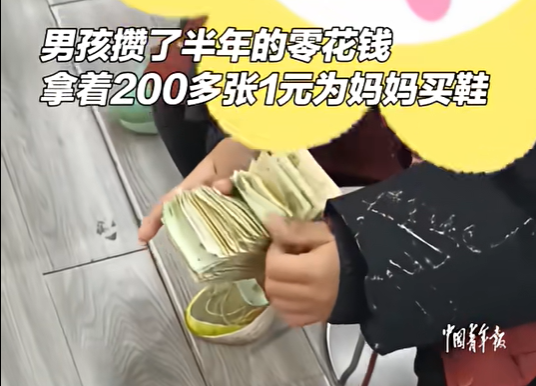 近日,河北石家庄,小男孩拿着攒了半年的200多元零花钱,来到商店为妈妈买鞋作为生日礼物。店铺老板说,男孩当时拿着一把1元的零钱走了进来,自己了解情况后给孩子打了折,并嘱咐他把钱收好,如果不合适让妈妈来换。