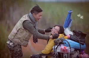 赖敏说,说是旅行,其实她每天坐在轮椅上,看得最多的就是心爱男人的背影。丁一舟一路上吃力地拉着她,有时衣服都浸透了,她很是感动。更多的时候,她会拿出手机给丁一舟拍照,配上文字,和大家一起分享。