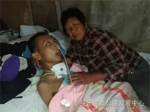 王素侠今年63岁,丈夫因病去世20年,一个人含辛茹苦养育着3个儿女都成了家,本该享受晚年幸福的时候厄运又至。2006年4月1号二儿子在出车回家突发脑干出血,送到医院经抢救命是保住了,可成了植物人,器官也割开了全靠打流汁喂养。十年间这位可怜的母亲把自己全部时间都交给了儿子,不分昼夜的照顾。儿媳也带着孩子走了,大儿子也因为挣钱都给弟弟看病离婚了。十年来儿子的病情无数次的反复,无数次的住院,不仅花光了家里所有积蓄,还欠了许多外债,把整个家庭拖累的支离破碎,导致生活更是难以支撑!联系人:金振13952212845,推荐负责人:王秀丽(丰县正能量公益发展中心妇联主席)